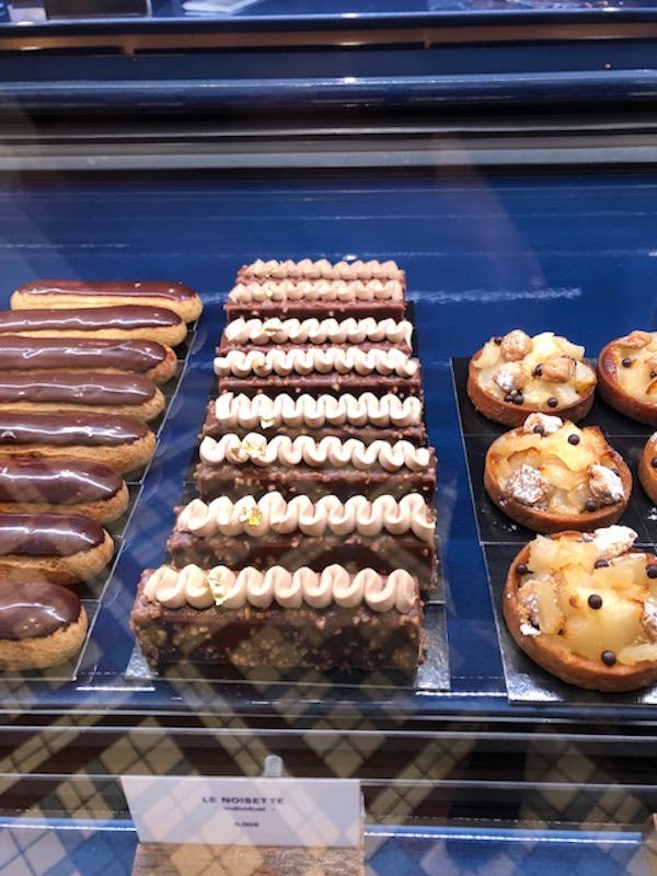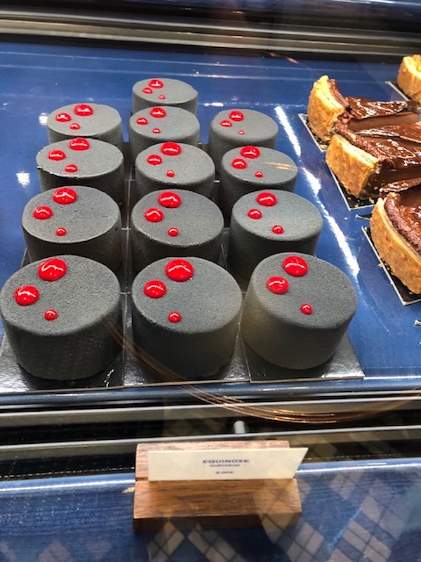 There was one hot chocolate on offer, the chocolate chaud, which unfortunately is only served in a paper cup. You all know by now how much I hate paper cups. They smell and taste like paper which isn’t great paired with chocolate. But still this was a beautiful hot chocolate. It is made from dark chocolate and had a rich nutty flavour and, like most French chocolates, was not overly sweet. Unfortunately, the staff disappeared out back the whole time I was there and I wasn’t able to ask them anything else about it. It came with a little plate full of dark chocolate fish. We also had the choice of dozens of incredibly beautiful and decadent looking desserts to choose from but considering how much chocolate I had already eaten that day, I thought I’d save them for next time.