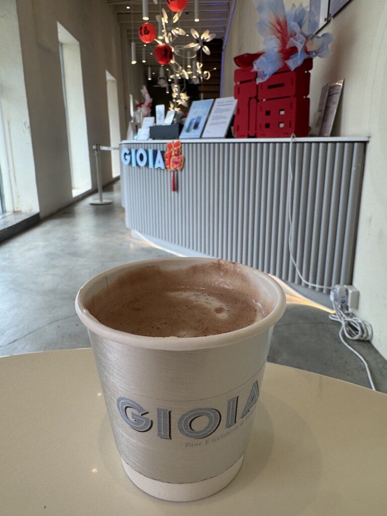 I ordered the hot chocolate, and it was undeniably decadent. But in this kind of heat and humidity, even in an air-conditioned café, seated on benches designed to look like giant blocks of ice, it’s hard to justify. I’d much rather have the frozen version. The chocolate gelato is equally decadent. Either way, you’ll be satisfied.