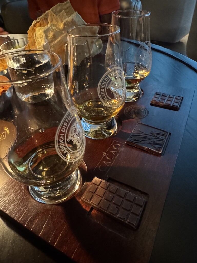 The highlight for us was the whisky and chocolate pairing. Beautifully done, it matched a series of single-origin whiskies with small samples of chocolate. There was more information shared here—origin, percentage, tasting notes—but no note of the maker. Even so, the combinations worked, and it’s something I’d happily return to experience again.